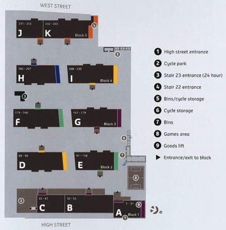Outside at Trinity Square there is designated smoking areas located in multiple places as well as a basket ball court that anyone can use, games room, study room and a onsite cinema room. Plus multipul lifts.