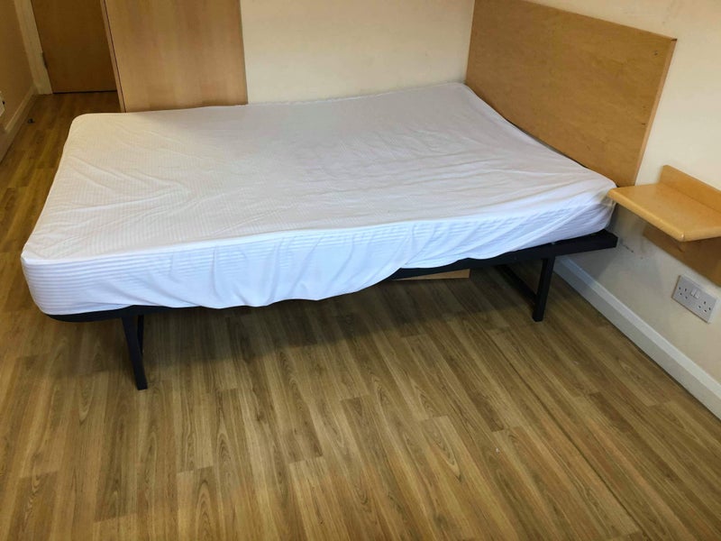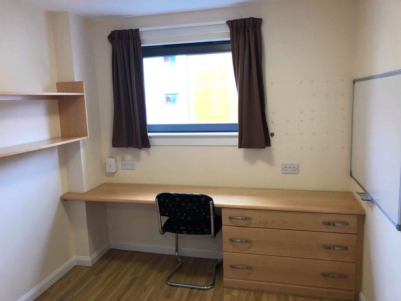 Clean, tidy and spacious bedroom at Trinity Square. The room comes with a double bed, wardrobe, draws, desk and desk chair. As well as , a ensuite bathroom with shower with very good water pressure. Also there is a shared kitchen with a 5 chair island, 2 sofas and all white goods are provided (oven, fridge freezer, washing machine, dryer, dishwasher, kettle, toaster, microwave as well as iron, ironing board, Hoover and mop). As well as this all rooms have an area to plug in a TV but NO TV LICENSE IS PROVIDED. wifi is accessible anywhere at Trinity Square.