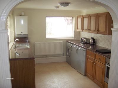 There is a spacious shared living room with remote control electric fire, and a large recently refitted kitchen including built-in oven and extractor hood, tumble dryer and washing machine.