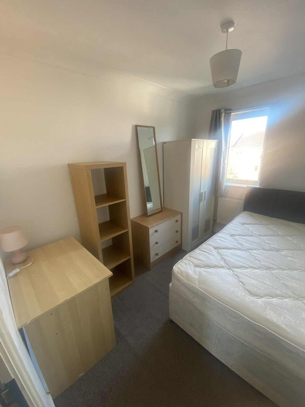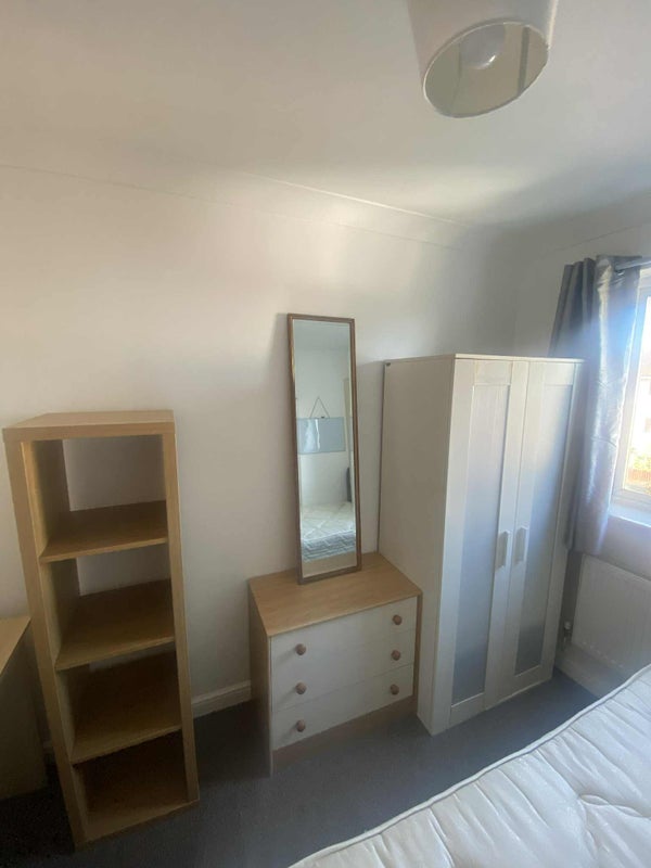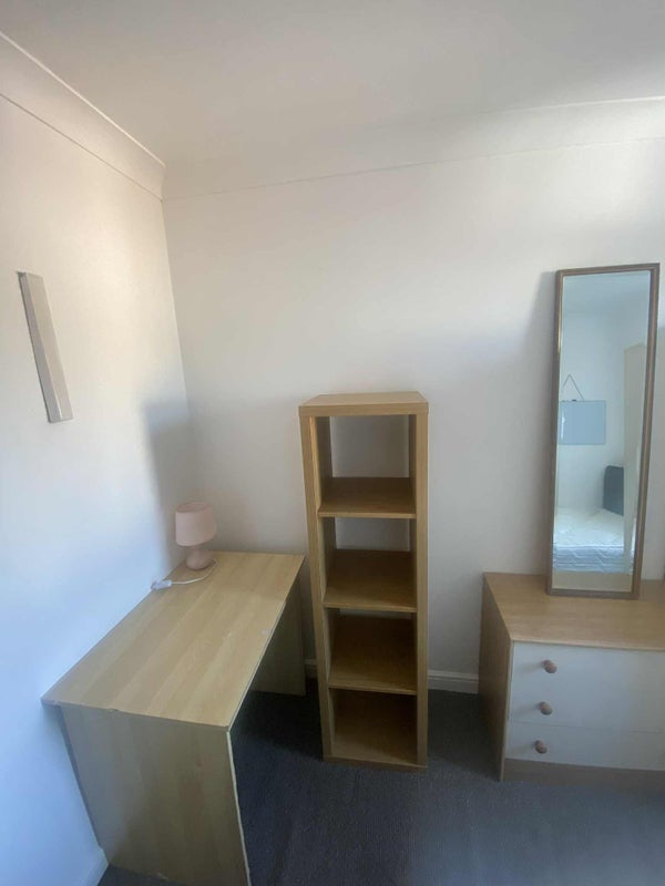 Fully furnished with a double bed, chest of drawers, wardrobe, bedside table and study desk