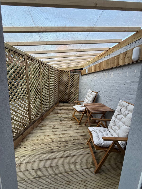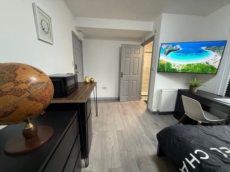 The room included a full set of brand-new furniture, 50" smart TV, a new memory foam mattress and a fridge freezer.