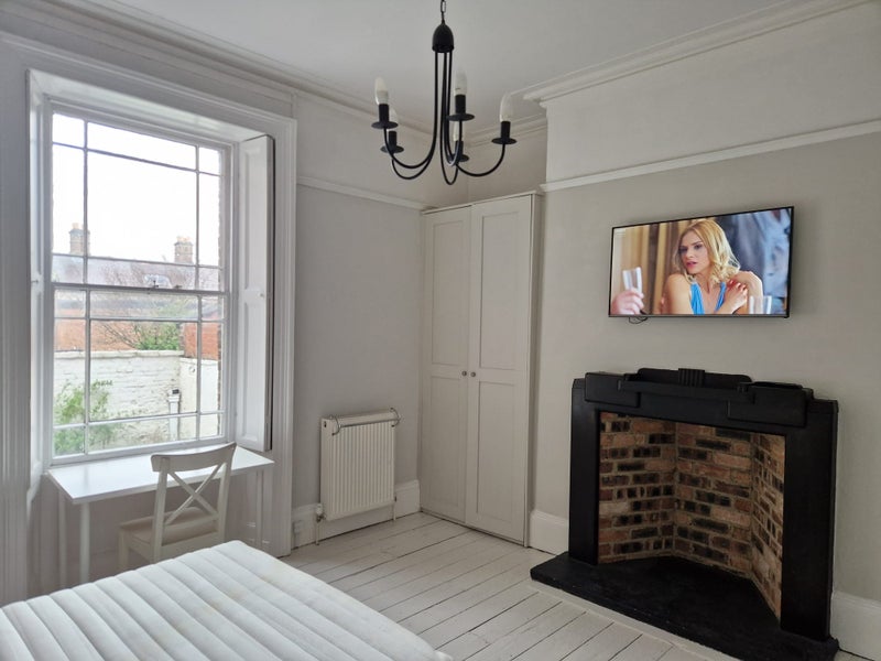 The room benefits from period features - stripped floorbaords, double bed, settee, wardobe, television etc and is light and airy. The room has its "workstation" with integrated fridge - hence easy to make a coffee or lunch etc without needed to use the kitchen - so very convenient.