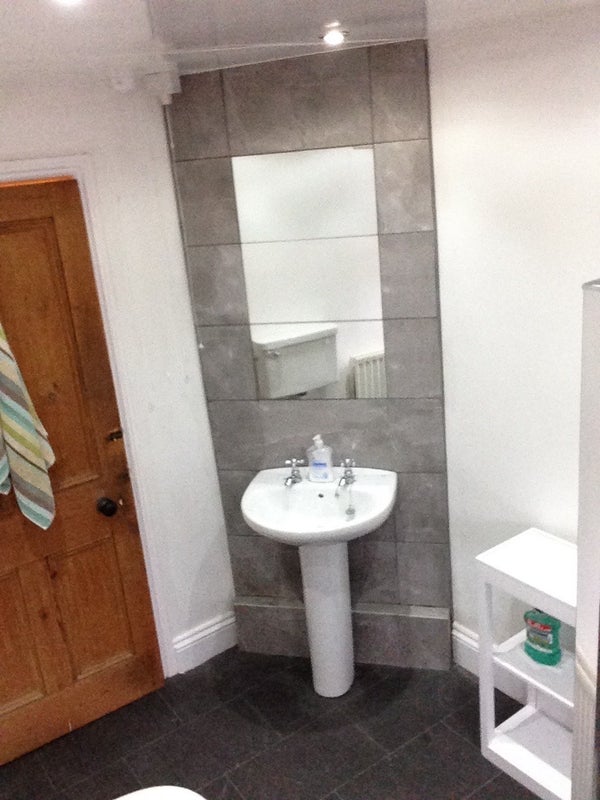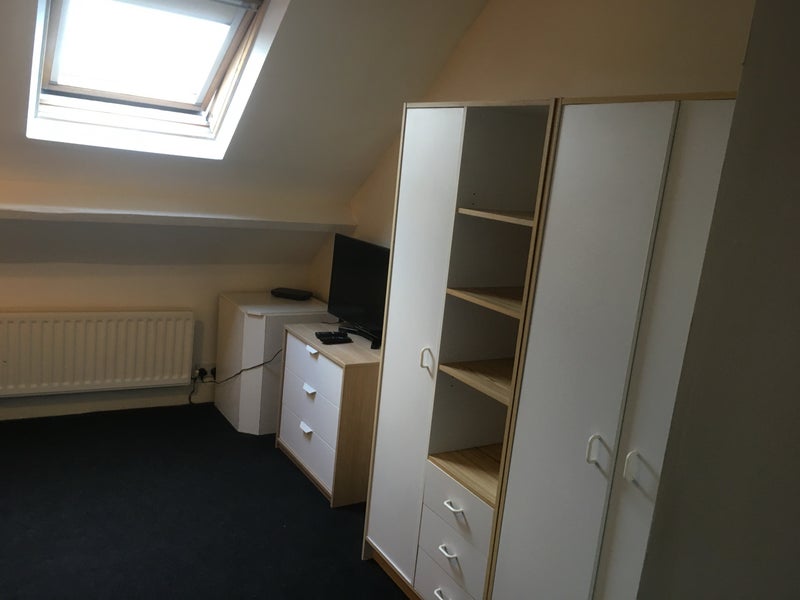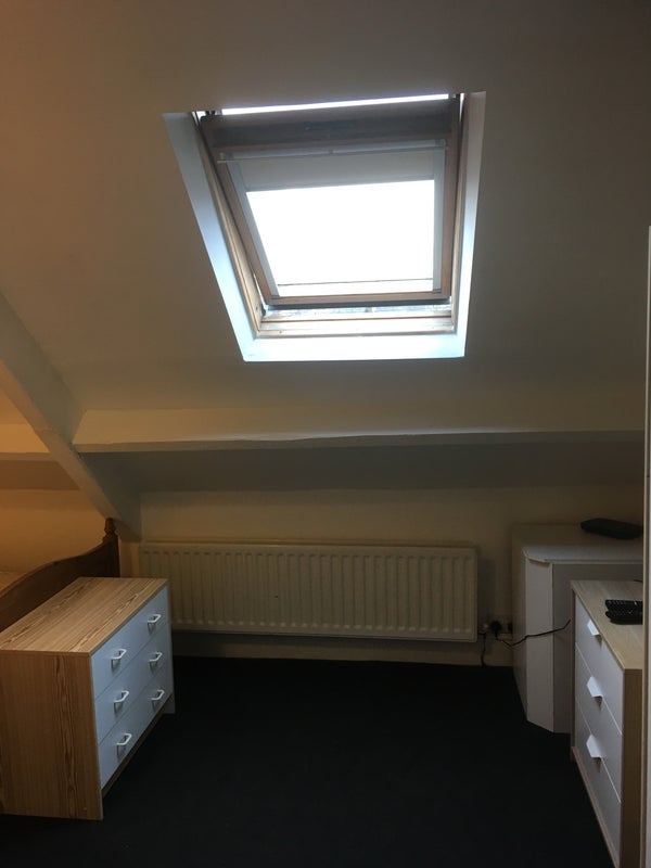 Fully furnished spacious room with double bed and 32” wall mounted TV. Sky TV mini box ( inc sports, movies and Netflix). Velux window fitted with blackout blinds.