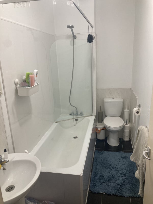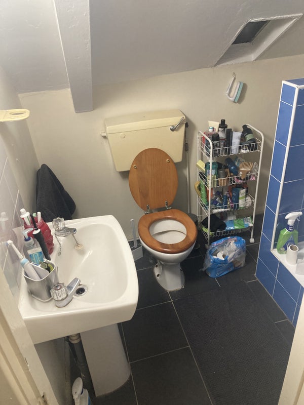 There’s 2 Bathrooms a living room & kitchen, shared studio, shared patio with downstairs neighbours.