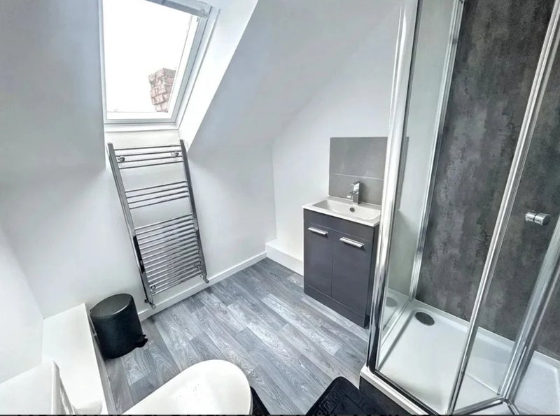 The accommodation includes a shared lounge, kitchen to the rear of the property with a good range of wall and base units, complimenting work surfaces, built in electric hob and oven, stainless steel one and a half sink with mixer tap, freestanding fridge/freezer, washing machine, dishwasher, toaster, kettle, microwave, double glazed door leading to the rear yard and two UPVC double glazed windows. Bathroom/WC and second floor shower room/WC.