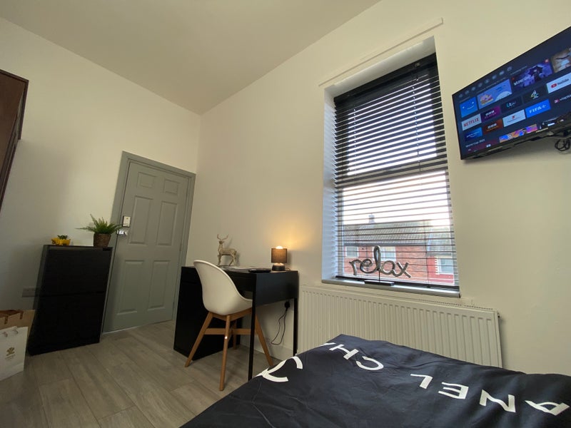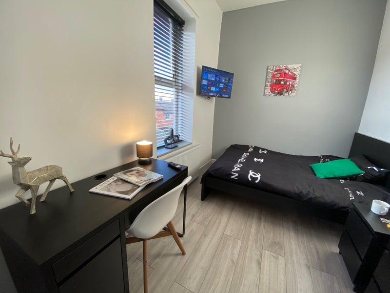 The room included a full set of brand-new furniture, 40" smart TV, a new memory foam mattress and a fridge freezer.