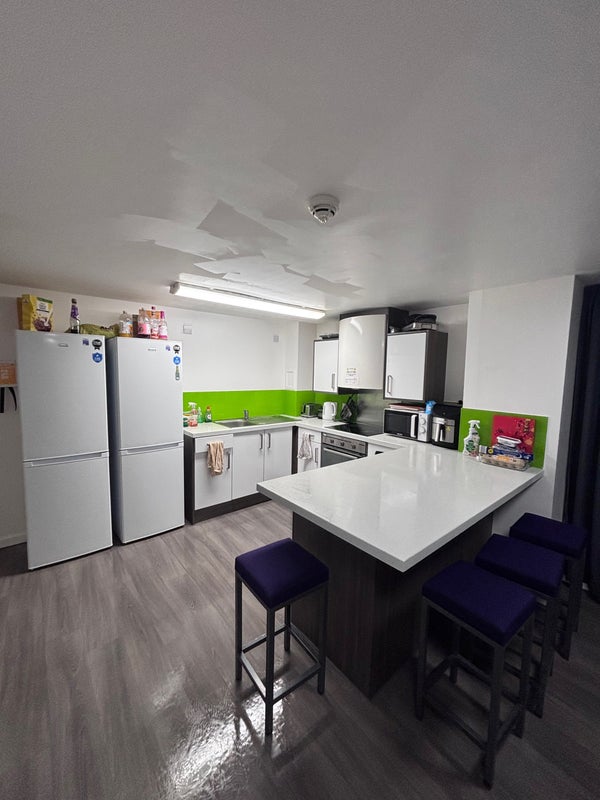 A shared kitchen/living space with 5 other flatmates