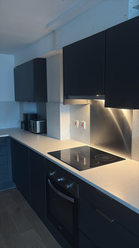 The flat includes a large shared kitchen, ideal for cooking and socialising with other students.