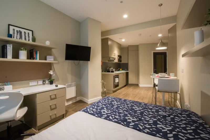 * What you get: Private studio with kitchenette, ensuite bathroom, study desk. Access to the cinema room, gym, communal lounge, dinner party room, laundry, and parking. On-site building managers for support.