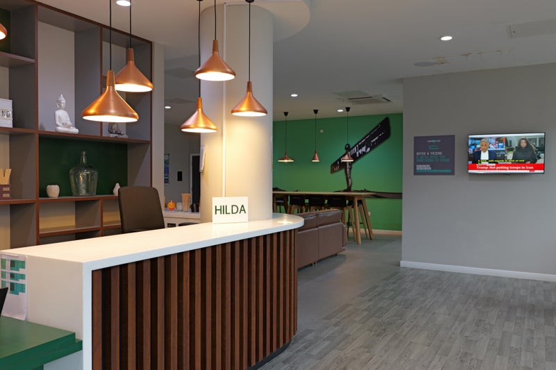 Our Jesmond units offers stylish, modern accommodation designed for students and young professionals. The building features a bright, contemporary design with a striking glass-fronted entrance that spans the full width of the communal space, creating a welcoming and open atmosphere.