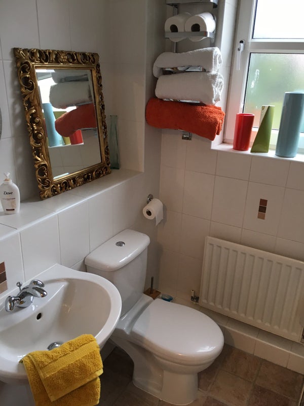 It's not ensuite as such - however I (Sue the owner) have the ensuite double - so the second shower room is yours - lovely big shower.