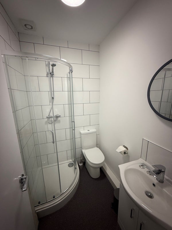 The flat features a stylish, newly installed shower room shared between the three bedrooms. Designed for practicality and shared living, it offers clean, efficient functionality with a contemporary finish.