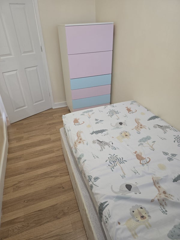 Cozy single room available in a clean, quiet 3-bed home with all bills and WiFi included, ideal for a respectful professional or student, located in a peaceful area with good transport links, £300 per month, one room already occupied, viewing available.