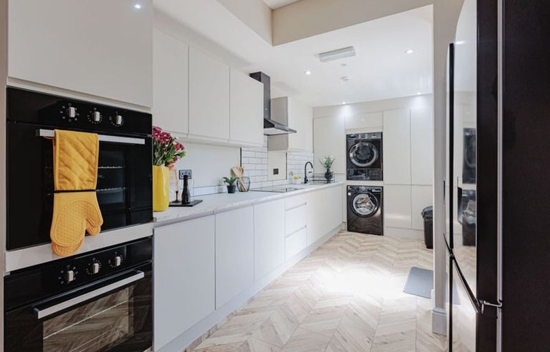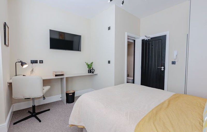 Each of the 6 double bedrooms is tastefully decorated and thoughtfully equipped with a 40” TV, desk, fitted wardrobe, and ample storage, ensuring comfort and convenience are at the forefront of this property's design. High speed WiFi and direct Cat6 to each room for reliable home working and streaming and high-tech security system installed for tenant safety including secure intercom to front to allow for room specific dial-in and external cameras.