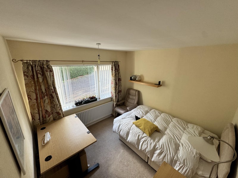 The room is north-facing and will be simply furnished with small double bed (underbed draws), small desk, wardrobe, chair and lamp.