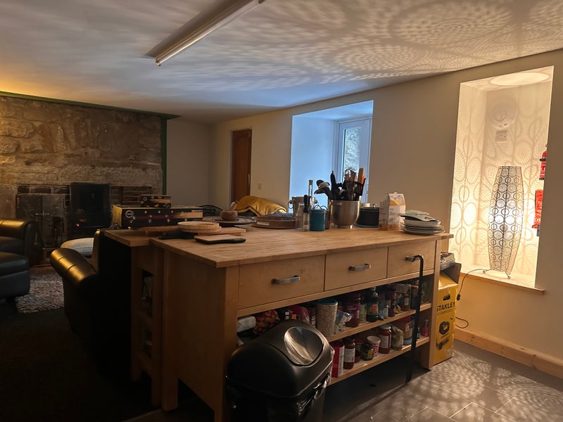 Ok so I have a basement area available which is basically 2 large sized rooms, which match the floor size of my apartment above. It has a large lounge and bedroom area with superking size bed, wardrobes and a very comfy corner suite for relaxing and watching sport/movies on the projector screen. In the other room there’s an open plan kitchen with lounge area with a tv. The space has its own spacious shower and toilet area. More photos to follow