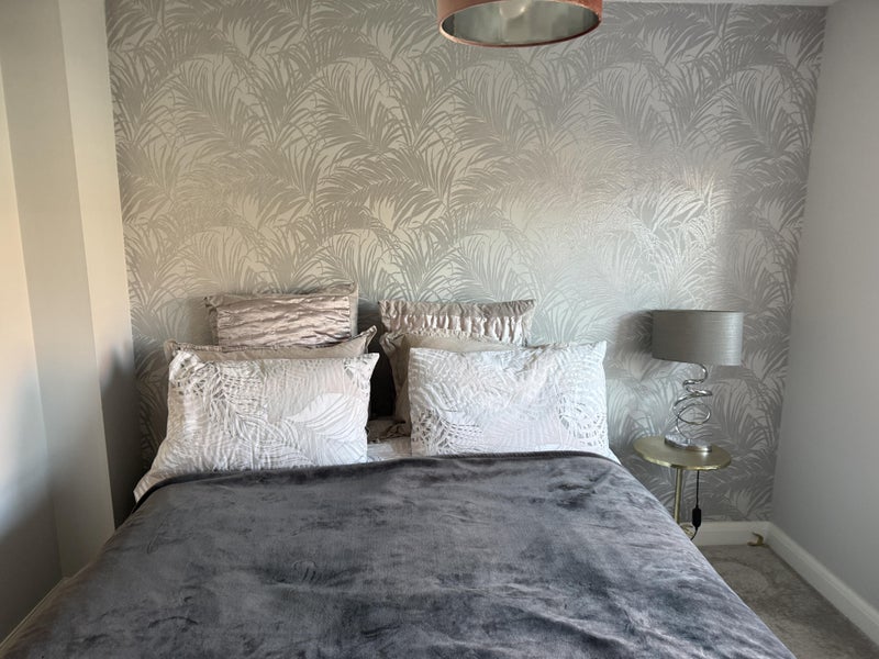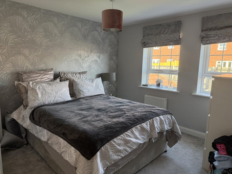 A bright and spacious king-sized bedroom is available in a stunning four-bedroom home, perfect for a professional woman looking for a calm, high-quality living environment.