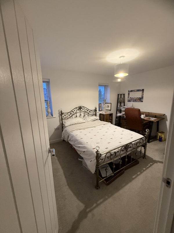 Double finished room to house share in the village of Cubbington on the outskirts of Leamington Spa. 10 mins drive to town and train station (can be walked or biked).