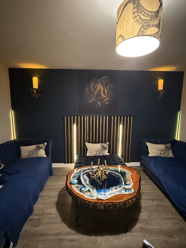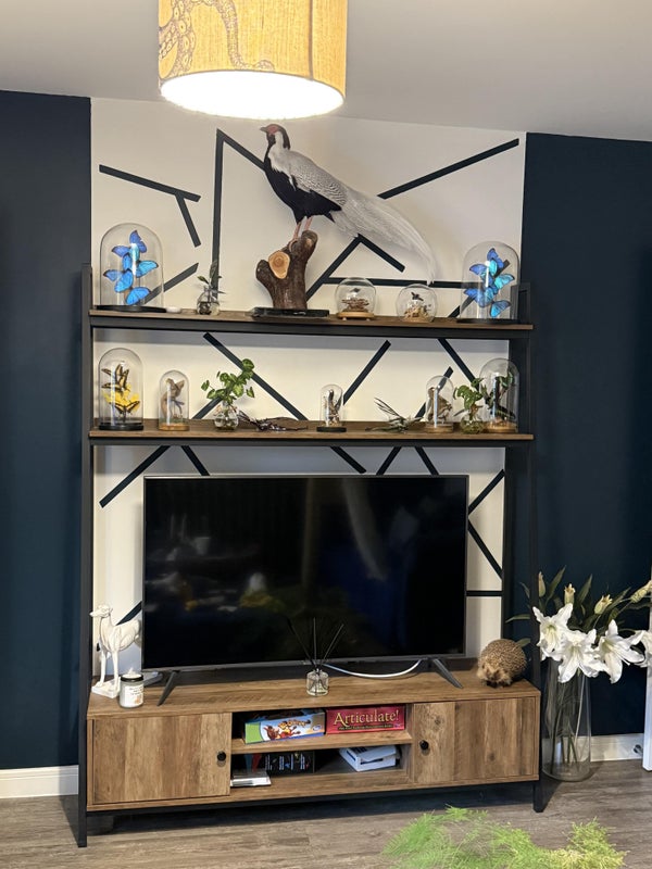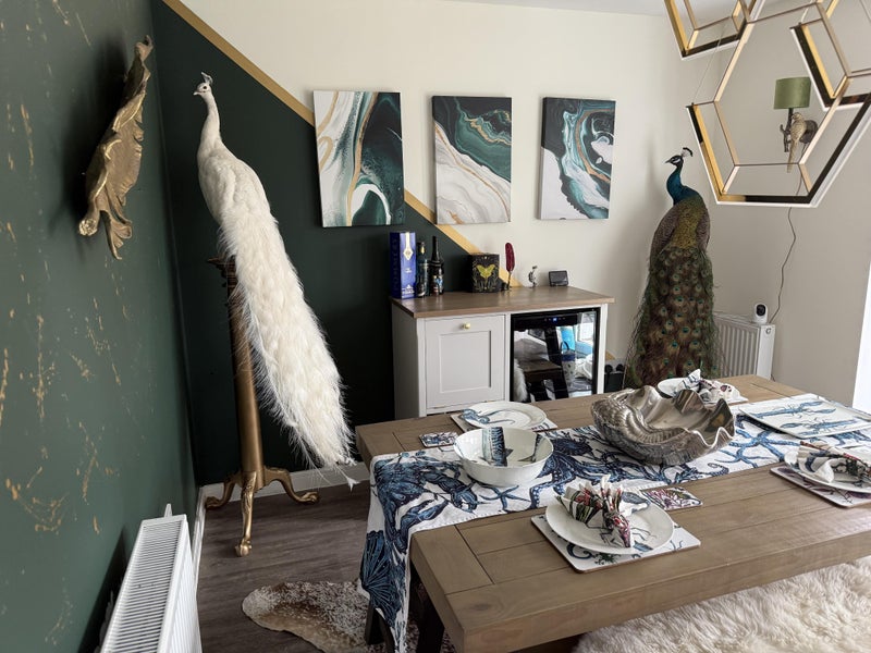 The home is shared with my 10 year old son, Whippet Fizz (litter of puppies currently), three ferrets, snakes and myself. A very different, quirky decor.