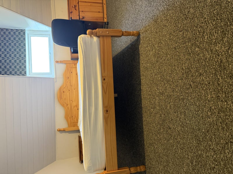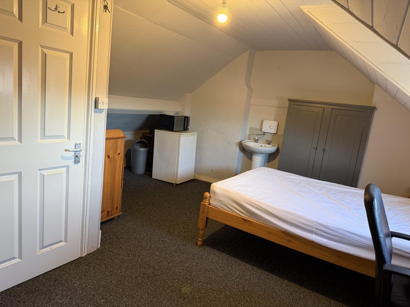 The room is furnished with a double bed, wardrobe, chest of drawers, desk & chair. The room also contains a fridge and new microwave.