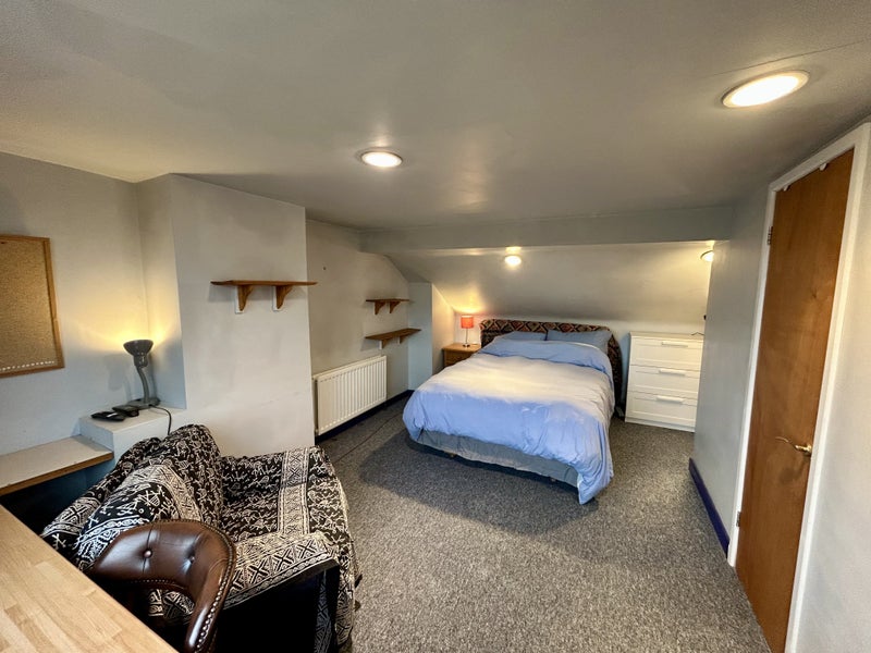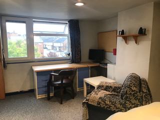 Private room with ensuite, TV, broadband connection and plenty of storage and study space.