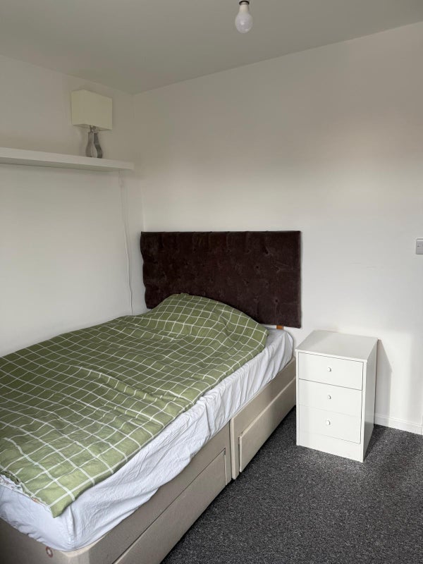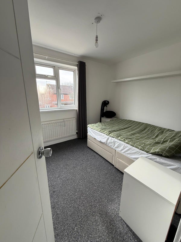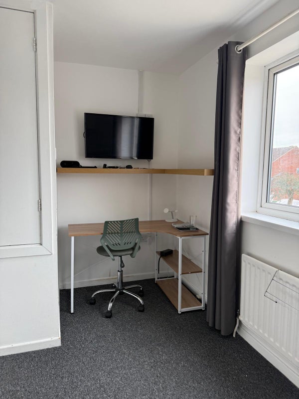 This is a double room. It has a shared bathroom with a double cubicle shower, no bath tub, and the bathroom is shared with just one other housemate.
