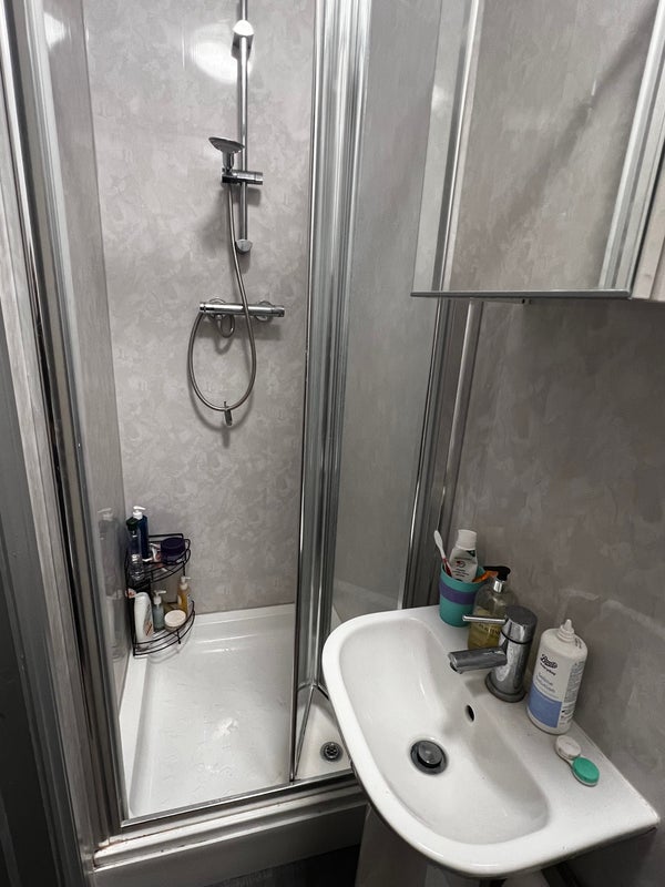 The room comes with a double bed, built in wardrobe, a table and a chair plus a private bathroom within the room, featuring an enclosed shower cubicle. The kitchen is for your sole use and is located just outside the room opposite in the hallway, equipped with a fridge, oven, and hob. The kitchen can be locked and comes with a key.