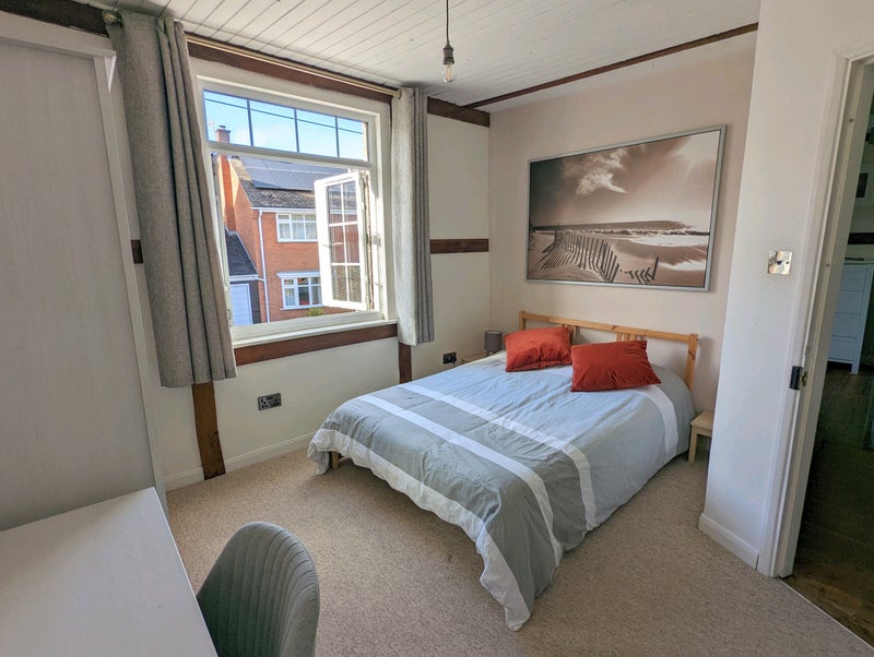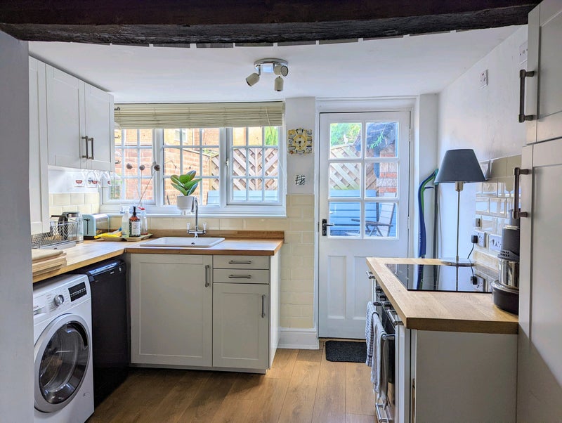 We can share all living areas and facilities: South facing walled patio garden, living room with TV & soundbar, large comfy sofa, dishwasher and laundry washer / dryer, breakfast bar (also since photos), unlimited broadband, the front door has a modern keyless lock and google doorbell, there is some storage space in the loft and the garden if required, and parking all along our little street.