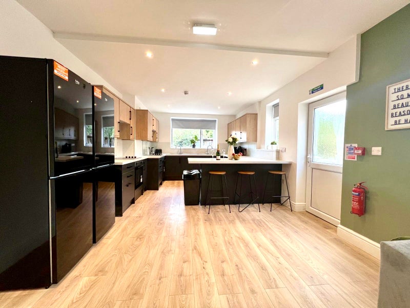 • Large shared kitchen with breakfast bar – 2 cookers, fridge/freezers, washer & dryer