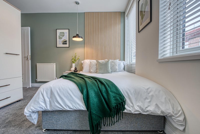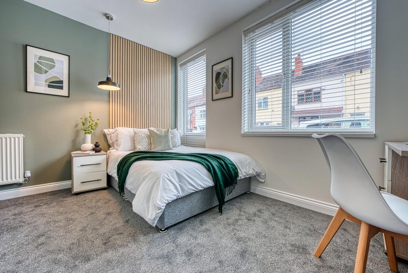 Bright and spacious double room with private en-suite available in a modern, well-kept house in a quiet residential area of Nuneaton. The property is conveniently located near local shops, amenities, and excellent transport links. The room comes fully furnished with a comfortable double bed, plus access to a fully equipped shared kitchen and living area. All bills and high-speed Wi-Fi included — perfect for a professional looking for a comfortable, hassle-free home.