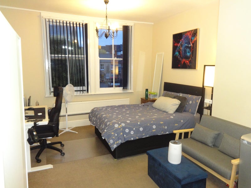 The property itself has been converted to a high standard and three kitchens which are nicely spread out over 4 very spacious floors, the rooms are located on the 1st & 2nd floors and come fully furnished with matching walnut furniture, double bed and bistro table/stool.