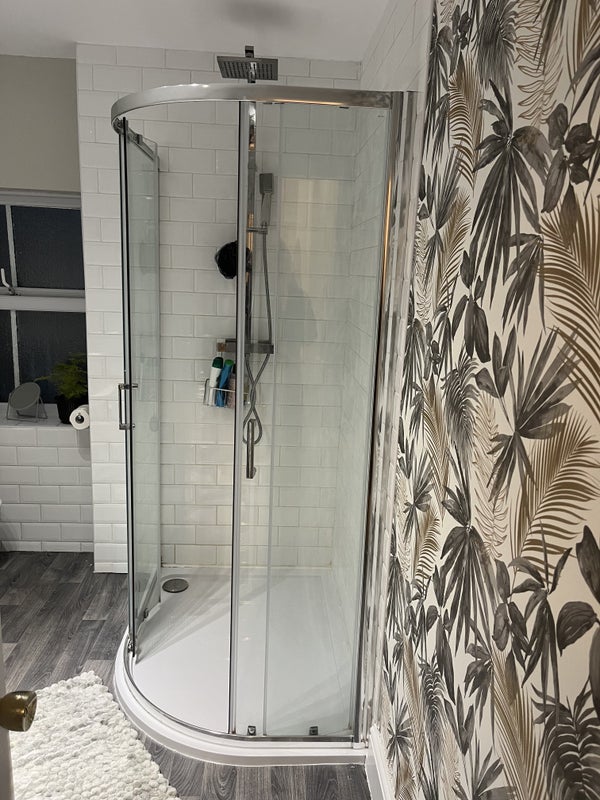 Spacious bathroom including shower cubicle and a bath.