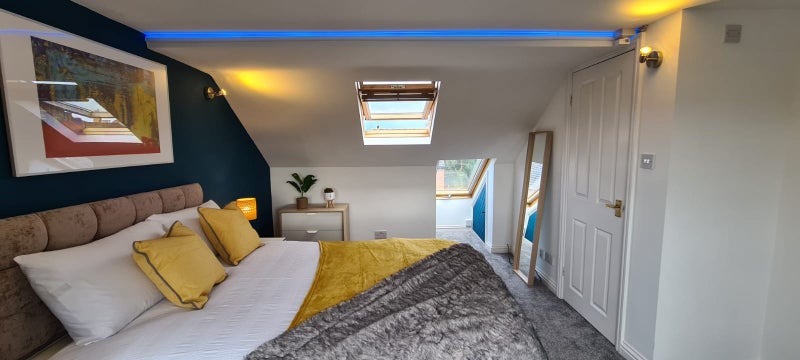 The room is fully furnished - double bed, bedside unit, double wardrobe and chest of drawers.