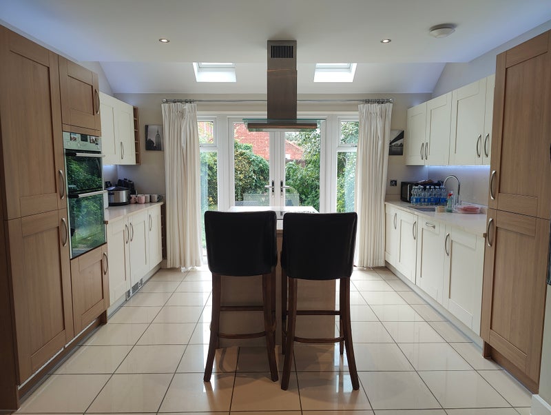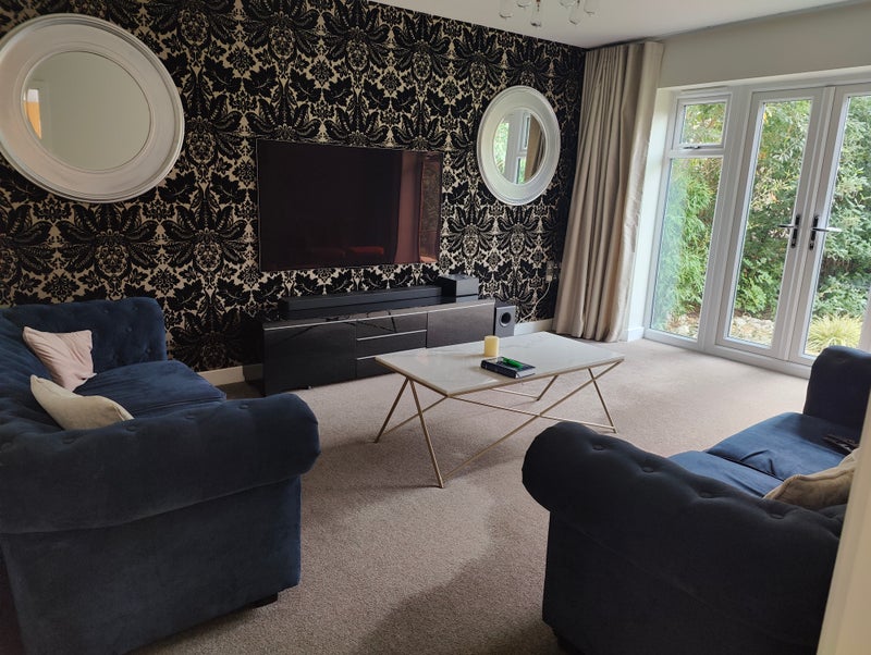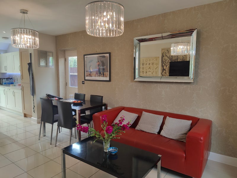 Living area with dinning and Big Island kitchen with lots of cupboards, storage , Integrated Fridge, double oven, Full size Dishwasher, Kettle, 2 Air Fryers, Slow cooker, Toaster and Food processer are all shared. Downstair shared toilet available as well.