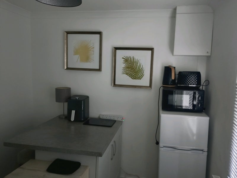 Kitchenette to include toaster kettle microwave fridge freezer breakfast bar and seating
