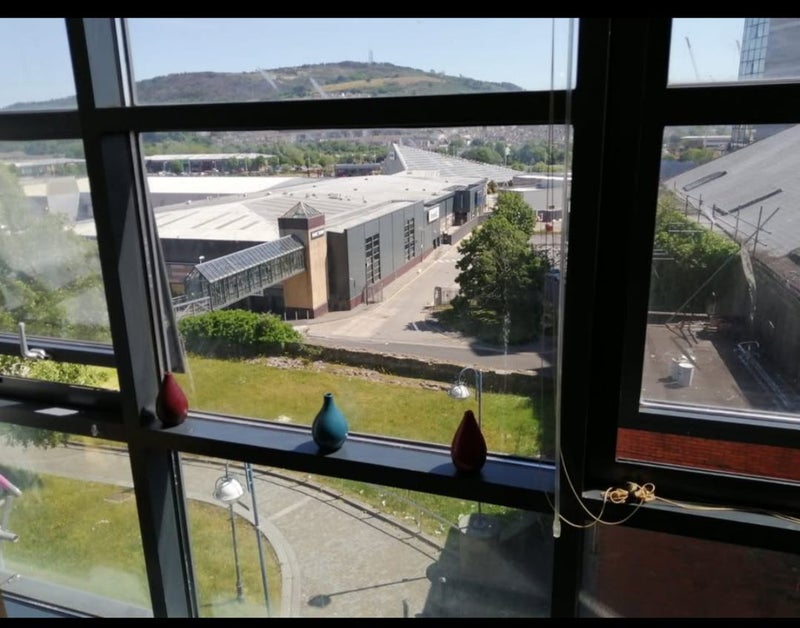 Views of Parc Tawe and Kilvey Hill.