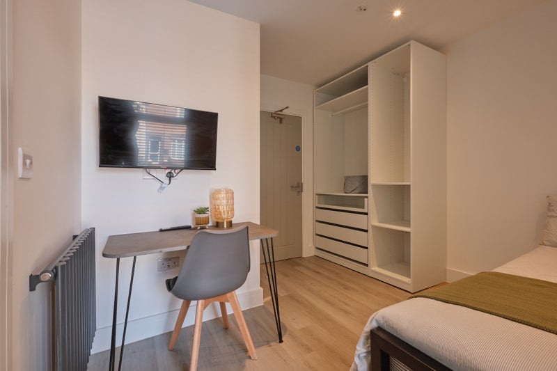 The bedrooms continue to impress with every room coming with a small double bed, 32” Smart TV, desk and chair and a wardrobe.