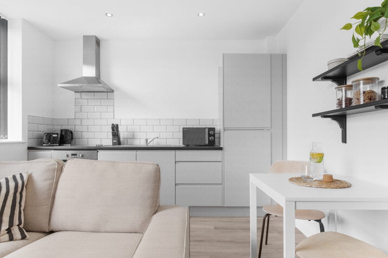 >Open plan kitchen and lounge area