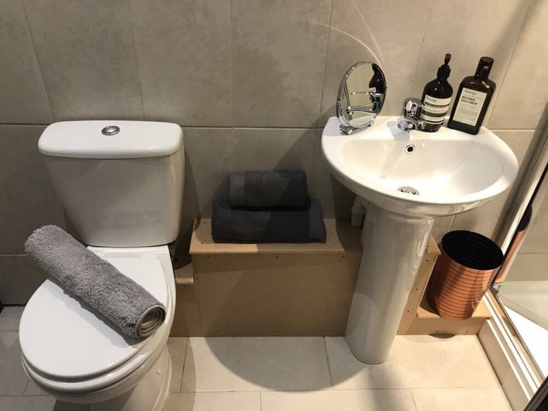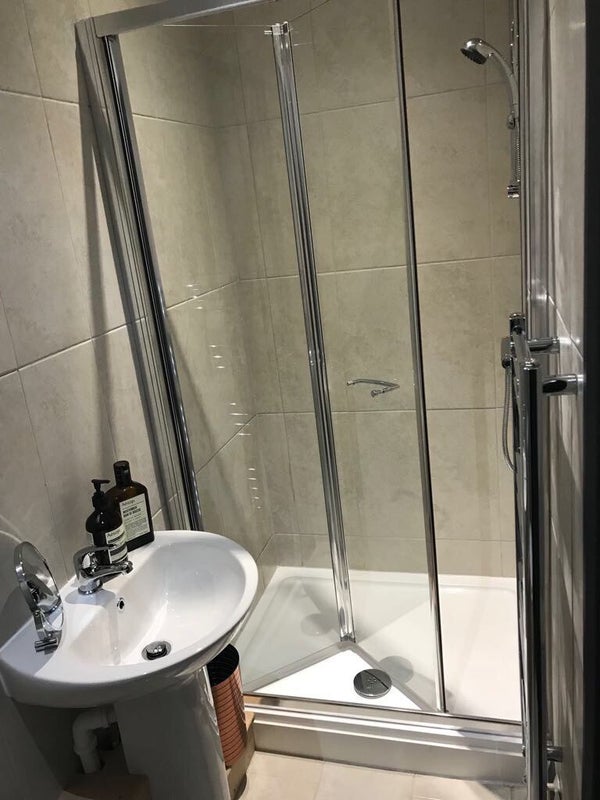 Stunning brand new shared kitchen with high gloss units and built in appliances; double oven, touch hob, microwave large fridge freezer, washing machine and dishwasher. All cooking utensils, pots/pans and crockery etc provided. There is a also a breakfast bar and stools.