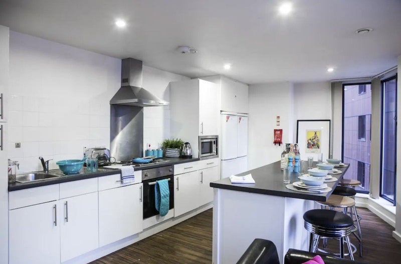 there are also many bus stops to help you get around birmingham for shopping or activities with friends. there are currently 5 other flatmates who are clean and you will get along with them very well. everyone gets along with each other and socialise well. the room has a lot of storage space including under the bed, 9-10 shelves above the desk, 3 big drawers and behind the bed, the headrest has a massive amount of space for suitcases. kitchen has two fridges which have half fridge half freezer space in each. there is a microwave and oven and you are provided with a vacuum too. there are bar stools for friends who may come to visit in the kitchen and also 2 couches and a TV.