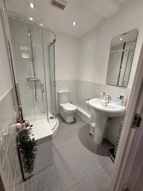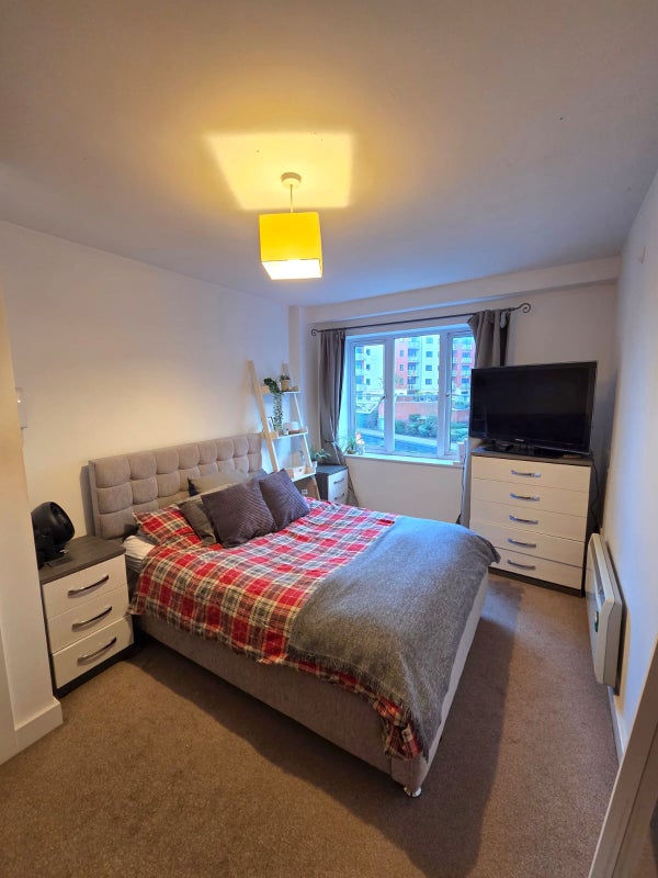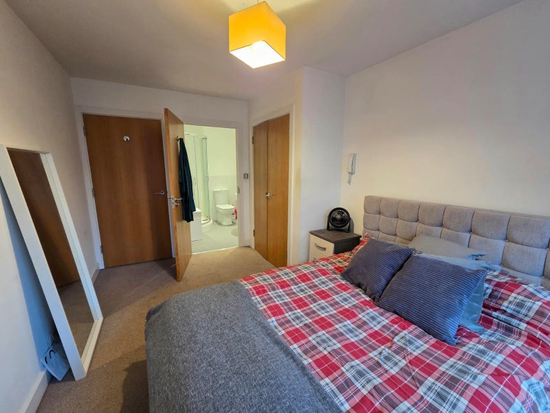 Your room is an ensuite double bedroom overlooking the canal. The flat is furnished, and the bedroom includes a double bed, a chest of drawers, two bedside tables, and a wardrobe. The rent doesn't include bills. The council tax band is E, and we currently pay about £55 for energy, £15 for water, and £15 for Wi-Fi per person.