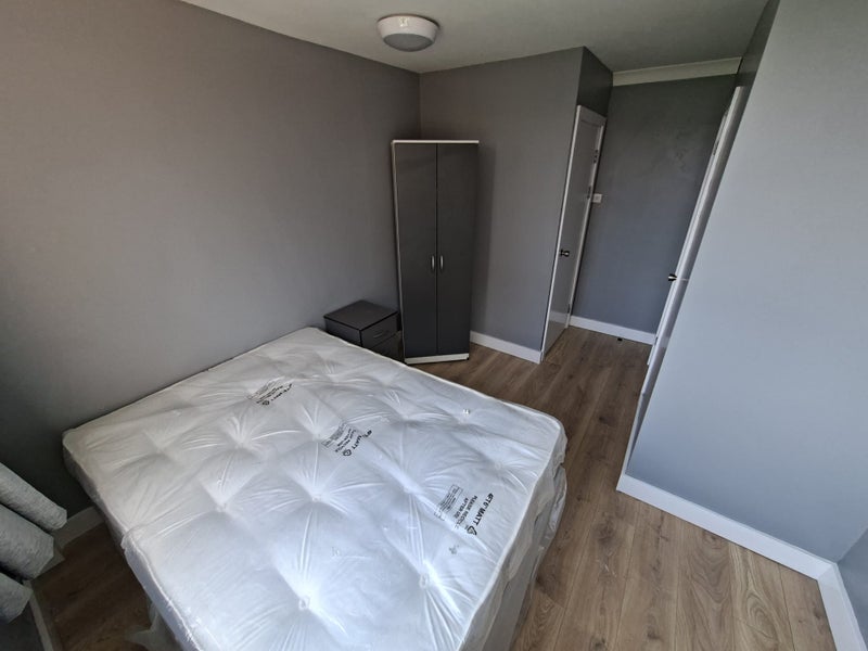 The whole house has been completely refurbished including the kitchen which is shared with the tenants. New double glazed windows, wooden and carpet floors, newly decorated room with bed and mattress. Good size wardrobe.