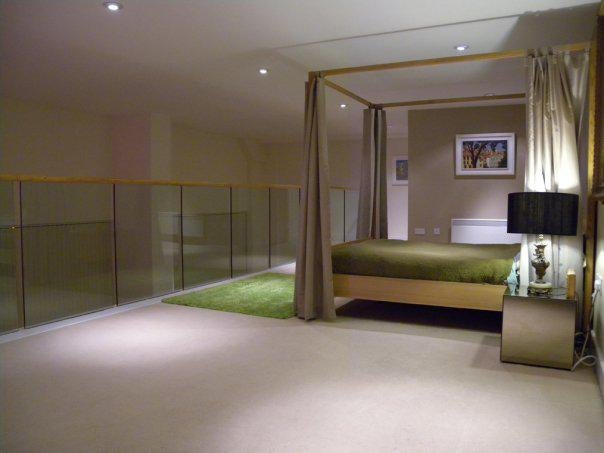 comprises a 40ft living space with three huge double glazed windows and a feature staircase leading to a mezzanine level bedroom with en-suite bathroom. This property has been furnished to a high standard with contemporary furniture including FOUR sofas, four poster bed and LCD TV.
