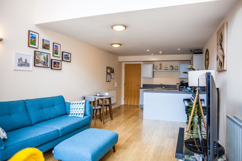 A stunning one bedroom apartment in Phase 2 of the prestigious King Edwards Wharf development. This spacious apartment overlooks the canal and receives gorgeous natural light through floor to ceiling windows set over two stories. The property comprises of a wide entrance hallway with guest WC and two good sized storage cupboards, leading on to open plan kitchen and spacious lounge. Stairs from the hallway lead up to a wide landing opening on to a large king size bedroom with luxury ensuite shower room as well as a spacious walk in wardrobe / dressing room and a further storage cupboard with combi-boiler. Gas central heating throughout. Secure allocated parking included underground, and 24/7 concierge service on site for residents.
