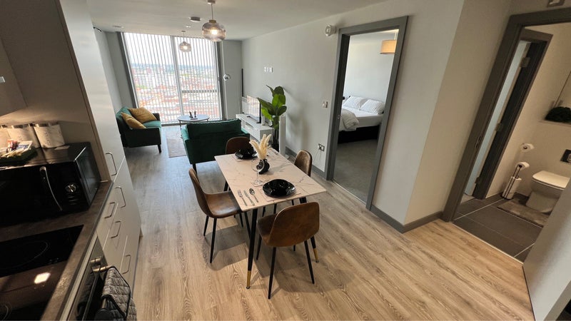 Our 1 bed apartment comes fully furnished, fully equipped with a sofa bed and designed to sleep 4 people with a spacious dining and kitchen area. The rental price is inclusive of water, electricity, council tax, TV licence, Unlimited WiFi internet, cleaning, and changes of linen.