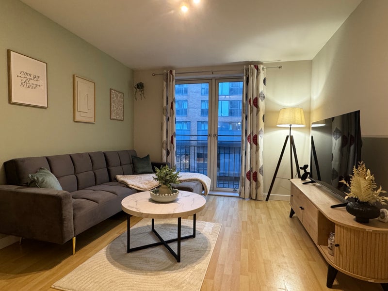 The living area now features a stylish corner sofa, a large 55-inch smart TV and a modern coffee table, providing a comfortable and welcoming space to relax or entertain. Fresh décor and upgraded finishes enhance the look and flow of the room, delivering a warm yet contemporary atmosphere. All works have been completed to a professional standard, offering a move-in-ready home with no refurbishment required.