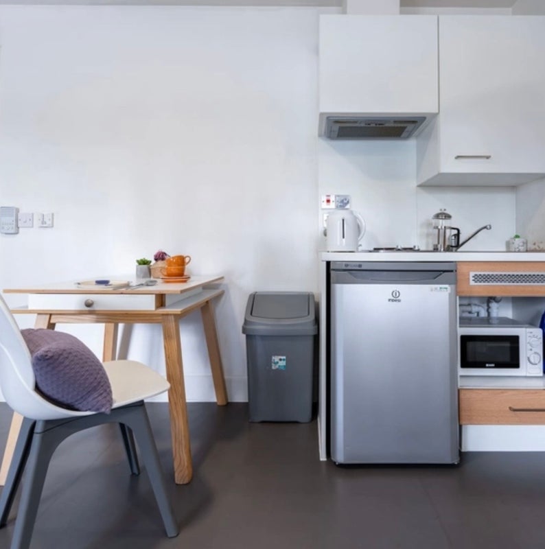 - This is a singular spacious studio based in B4, including a private bathroom, bedroom and kitchen.