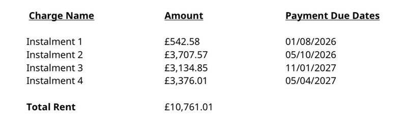 - Rent is paid termly.