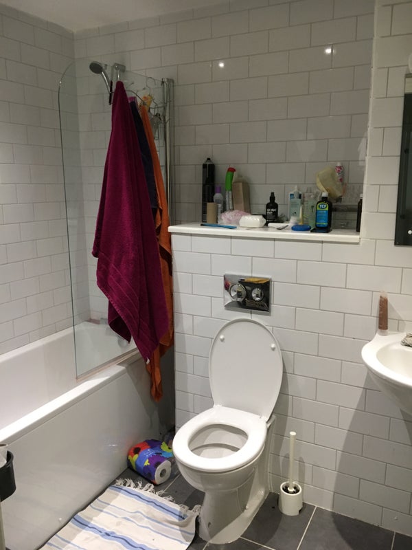 Shared bathroom and living/kitchen area.