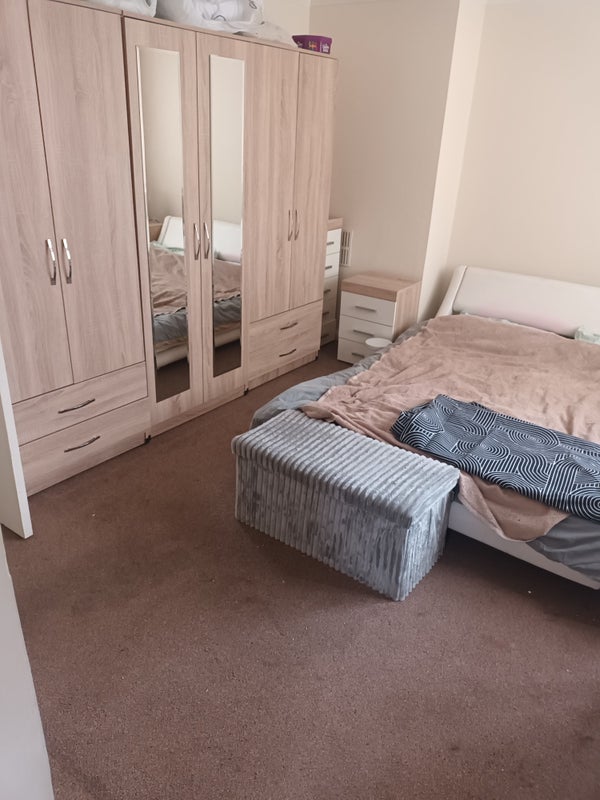 Large double bedroom new wardrobes and plenty of storage space alongside. upstairs toilet/bath/shower. Downstais w. c..full use of house as currently working full time. Myself 61 years totally straightand professional did have lodger but left to move back in with parents .She is Happy to give reference .Have toy poodle so must love pets. Wifi and all bills in price.